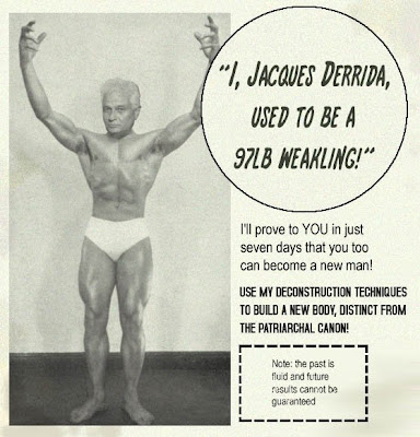 This brings me to my second claim, that excessive recourse to deconstructionism negatively impacts critical thought. For decades, scholarly writing has incorporated the concepts of diffĂ©rance, presence/absence, readerly/writerly texts etc., and also the hellaciously turgid, pleonastic, euphuistic, and sesquipedalian prose style excerpted above. The grand old men of deconstruction don’t get a free pass here, but they are exculpated to some extent by dint of the fact that they articulated the theories first. The thing is, though, that the axioms of Western philosophy and literature have been rigorously scrutinized since the sixties, and it therefore becomes harder to create fresh approaches. Often the critical game feels rigged so that the conclusion is established before the premises: i.e. ontology is dicey, intertextuality runs riot, meaning is not fixed, and relativism is all that can be established. Against this backdrop, it is difficult to construct a novel interpretative opinion.